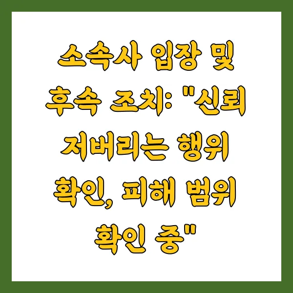 소속사 입장 및 후속 조치: "신뢰 저버리는 행위 확인, 피해 범위 확인 중"